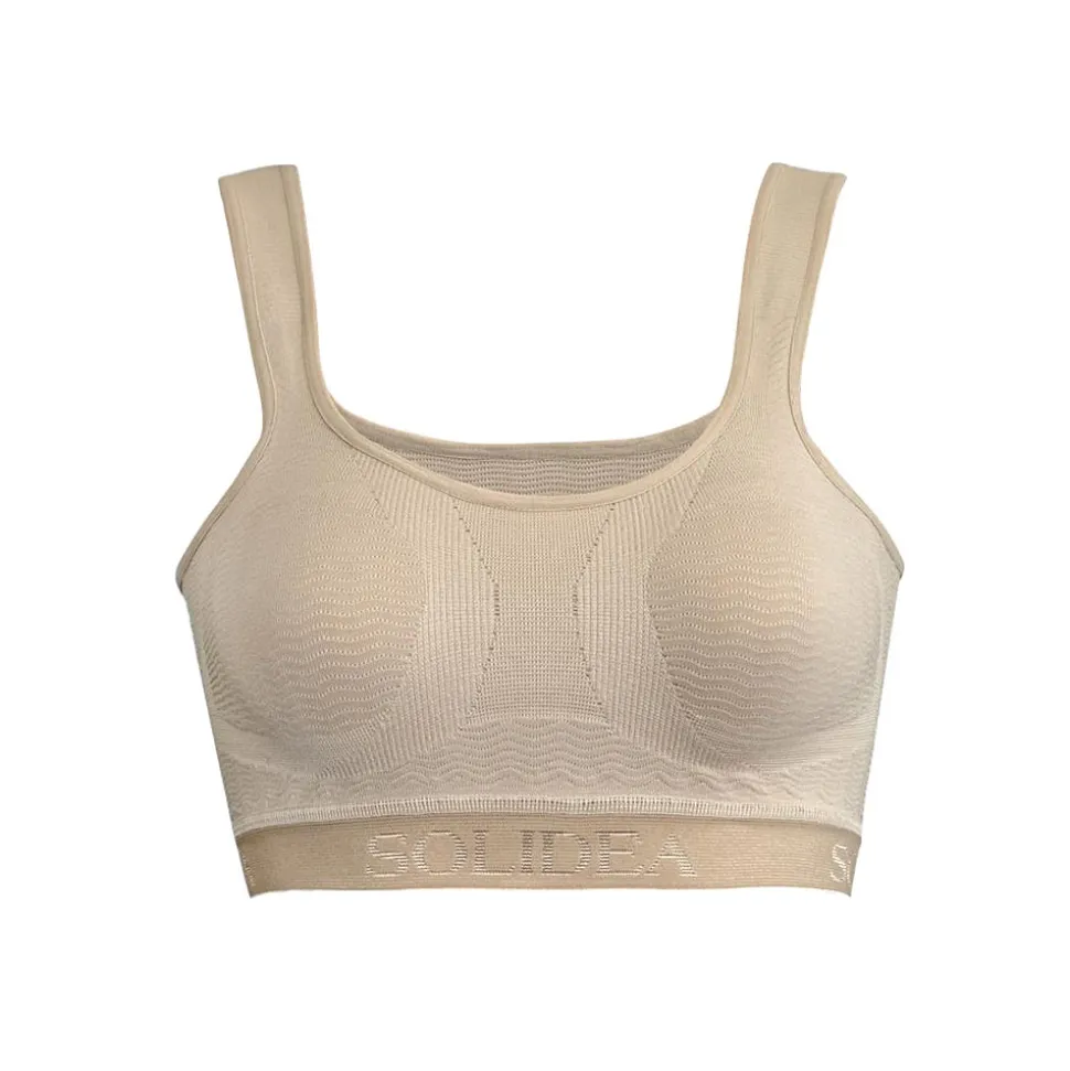 Il tessuto delle coppe è molto elastico e si adatta ad ogni forma e volume di seno. E’ realizzato in filato batteriostatico agli ioni d’argento che, grazie alle sue uniche caratteristiche, ostacola la proliferazione batterica e previene l’insorgenza di cattivi odori. Adatto anche per uso sportivo.