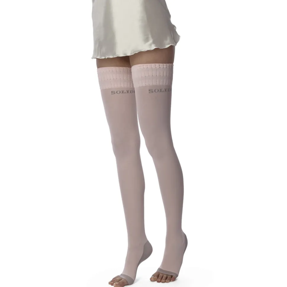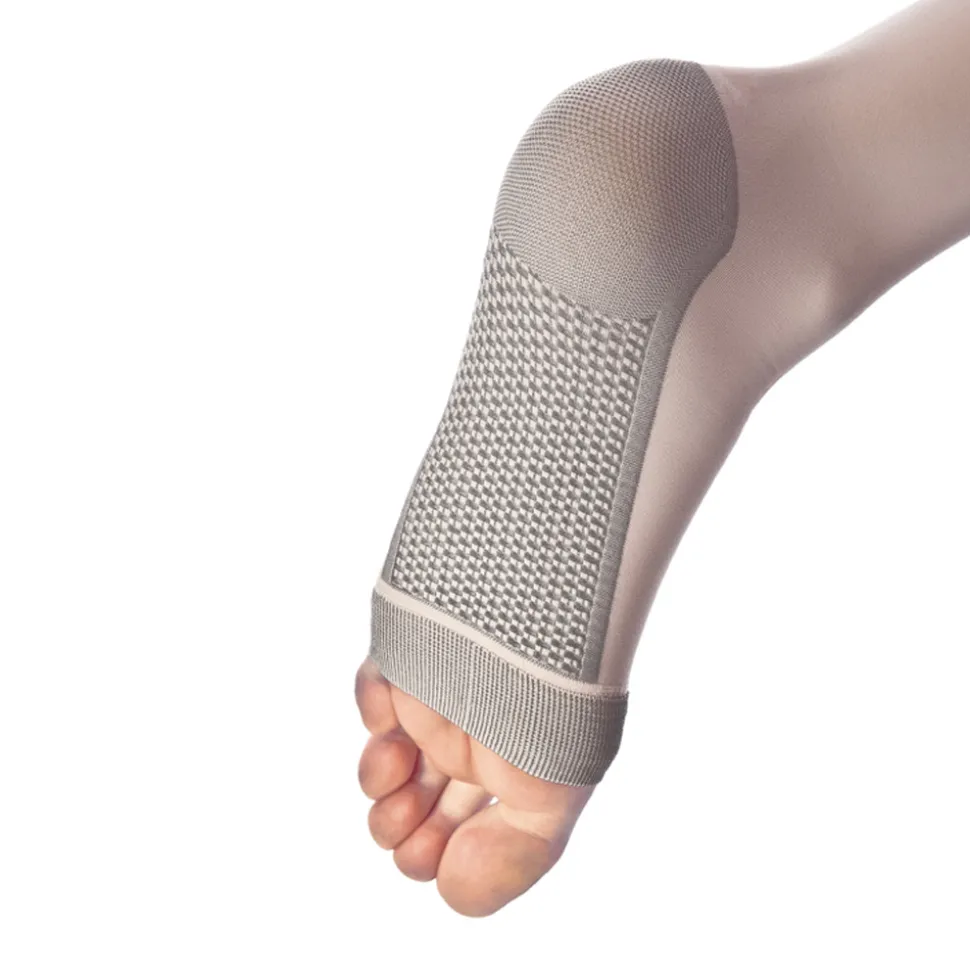 Calze a compressione graduata 12/15 mmHg. Il dispositivo e’ indicato per la gestione e l’alleviamento del ritorno venoso e linfatico, per prevenire uno o più disturbi della circolazione (p. Es., Edema, trombosi venosa profonda (TVP), varicosi, linfedema). Studiate appositamente per essere indossate durante il sonno notturno. Dotate di balza autoreggente con elastomero al silicone di nuova generazione, molto più tollerabile del silicone tradizionale.Realizzato con filato contenente un additivo minerale che, stimolato dall’energia termica naturale del corpo, la converte in raggi infrarossi FIR e la rimanda al tessuto cutaneo, con gradevole effetto termoregolatore. Con trattamento antimicrobico.