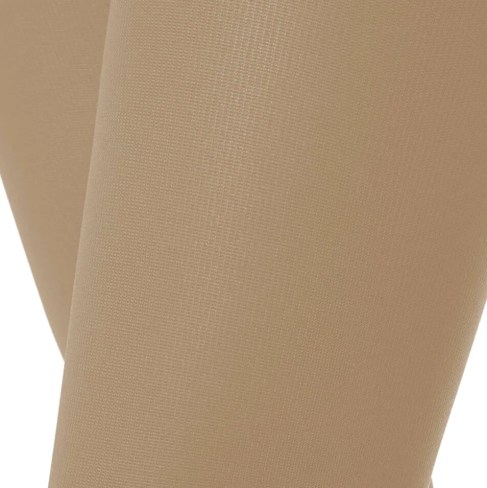 Collant 140 den coprente con corpino anatomico, snellisce la figura, contiene il ventre e affina la silhouette. La compressione graduata 18/21 mmHg migliora il ritorno venoso e linfatico, ideale per prevenire e trattare uno o più distrurbi della circolazione (edema, DVT, varicosi, linfedema). Con specialefilato batteriostatico. Soffice plantare anatomico in rilievo per una morbida base d’appoggio al piede. Tassello igienico in cotone e cucitura piatta.