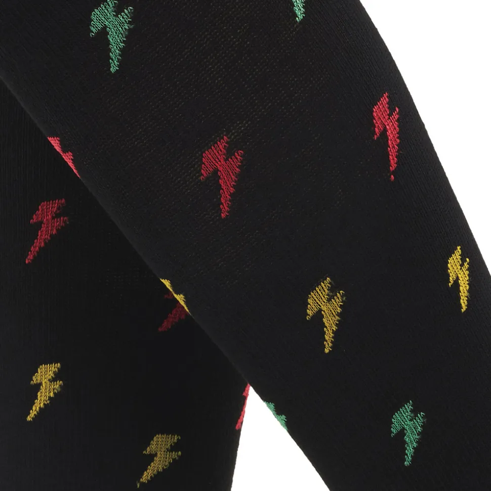 Gambaletto unisex a compressione graduata 18/24 mmHg con pregiato filato di bamboo con fulmini colorati. Il dispositivo è indicato per la gestione e l’alleviamento del ritorno venoso e linfatico, per prevenire uno o più disturbi della circolazione (p. Es., Edema, trombosi venosa profonda (TVP), varicosi, linfedema). Elevato comfort e look elegante sono assicurati! Il tessuto della maglia è realizzato in 3 strati formando un effetto sandwich: all’interno il filato in poliammide ed elastan mentre all’esterno e all’interno, a contatto con la pelle, il filato di bamboo per godere della sua piacevole sensazione come se la calza fosse tutta in filato di bamboo. Questa speciale tessitura crea un “microambiente” nel tessuto che permette la traspirazione e la termoregolazione mantenendo la cute asciutta. Con punta rimagliata invisibile.