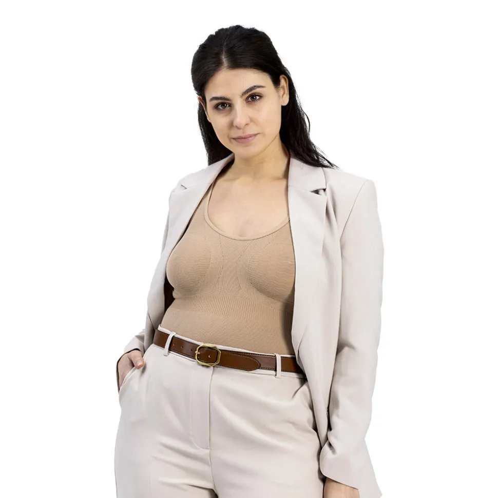 Body a compressione in tessuto micromassaggiante con reggiseno incorporato per un confortevole sostegno. Il dispositivo è indicato per la gestione e l’alleviamento del ritorno linfatico e per prevenire uno o più disturbi della circolazione linfatica (p. Es., linfedema). La trama micromassaggiante favorisce il drenaggio dei tessuti della regione toracica, sottoascellare, addominale e dorsale per una pelle più liscia e più tonica. Si indossa con facilità e grazie alla sua conformazione avvolgente, che abbraccia gradevolmente il seno e il busto, con benefici anche sulla postura. E’ privo di cuciture nelle zone rinforzate del reggiseno per donare il massimo confort anche in caso di mastoplastica additiva e riduttiva. Chiusura con bottoncini automatici.