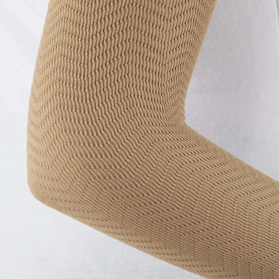 Maniche micromassaggianti lunghe fino al polso, senza cuciture con compressione graduata 15/21 mmHg. Il dispositivo è indicato per la gestione e l’alleviamento del ritorno venoso e linfatico, per prevenire uno o più disturbi della circolazione (p. Es., Edema, trombosi venosa profonda (TVP), varicosi, linfedema) e in caso di lipedema. Il dispositivo è indicato come ausilio al trattamento dell’aspetto della buccia d’arancia (cellulite). Il tessuto micromassaggiante con i naturali movimenti degli arti superiori stimola la microcircolazione. Il micromassaggio attivo del tessuto lascia dei leggeri solchi sulla pelle che spariscono entro qualche ora, lasciando la pelle liscia. L’innovativo supporto dorsale le sostiene avvolgendo le spalle per una perfetta vestibilità. Il filato batteriostatico, dalle speciali proprietà traspiranti garantisce il mantenimento dell’equilibrio biologico della pelle, contrastando l’insorgenza di cattivi odori. Particolarmente indicato nei linfedemi agli arti superiori.